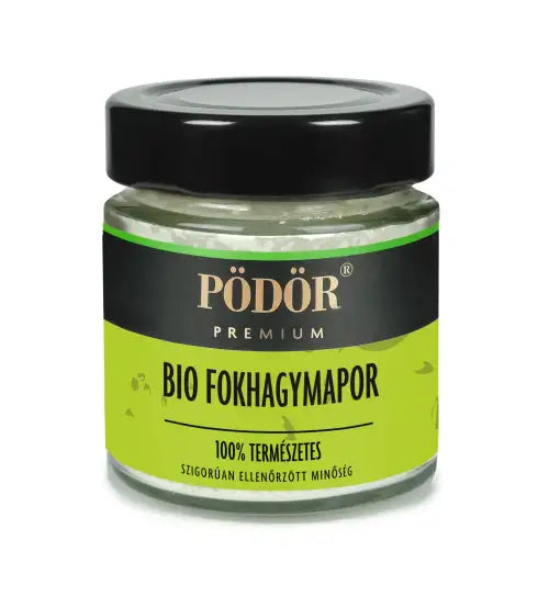 A Pödör bio fokhagymapor friss fokhagymából készül, amely ellenőrzött ökológiai gazdálkodásból származik, hogy Ön a legjobb minőséget kapja.