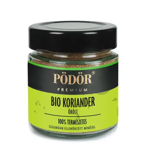 A koriander az egyik legrégebb óta használt és nagy népszerűségnek örvendő fűszer. Magját - amely értékes nyomelemeket tartalmaz - őrlés előtt enyhén megpirítjuk az aromák kinyeréséhez. A Pödör őrölt koriander diós aromájú, enyhén fűszeres, édes-csípős íze a narancsra és a fahéjra emlékeztet. Jól illik sültekhez, hús- és sonka pácokhoz, házi savanyúság készítéséhez, de sokoldalú felhasználását mi sem bizonyítja jobban, mint, hogy süteményeket, likőröket és sört is készíthetünk vele