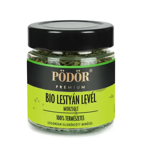A több mint egyméter magas lestyán bokrok sötétzöld lombos leveleit gondosan leszárítjuk majd finoman apróra vágjuk.