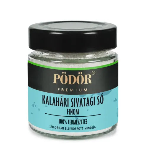 A Pödör kalahári-sivatagi só egy rendkívüli termék. A sót a dél-afrikai Kalahári-sivatagban egy természetes sós tóból nyerik ki, a napon kiszárítják, majd csomagolják. A terület mindig lakatlan volt, és ipari célokra nem hasznosították. Így a Pödör kalahári-sivatagi só olyan ínyenc sófajta, amely mindenféle negatív környezeti hatástól mentes. A durva szemcse a só eredeti állapota; szükség esetén nemesacél darálóval közepesen durva és finom sóvá őrlik.