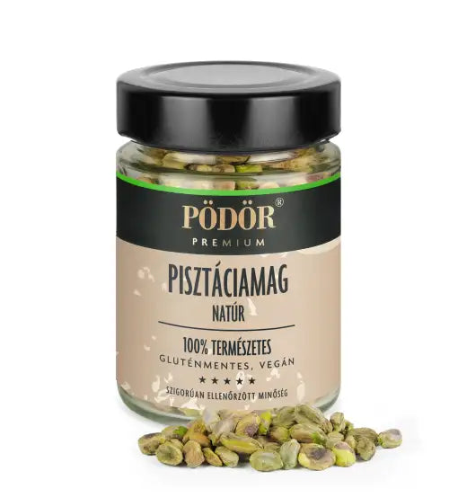 Az iráni pisztácia, amit gyakran csak „zöld mandulaként” emlegetnek diós íze miatt, igazi különlegességnek számít a konyhában. Értékes tápanyagaival, az egészségre gyakorolt jótékony hatásaival és utánozhatatlan ízével valóban ki is érdemelte ezt a címet. Ennek az örökzöld, akár tizenkét méter magasra is megnövő fának a magja édeskés, ugyanakkor fűszeres ízével kápráztatja el híveit. Mi a Pödörnél kizárólag a legjobb minőségű, garantáltan génkezelésmentes pisztácia magokat használjuk fel, mindenféle adalék nélkül.